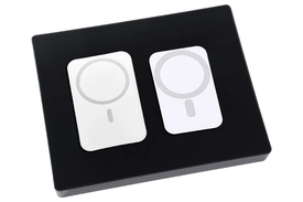 Magsafe uyumlu araç içi kablosuz şarj cihazı ve 5000 mAh hızlı şarj powerbank içeren, şık EVA sünger düzenleyici ile sunulan, firmanızın logosu ile özelleştirilebilen prestijli bir hediye kutusu.